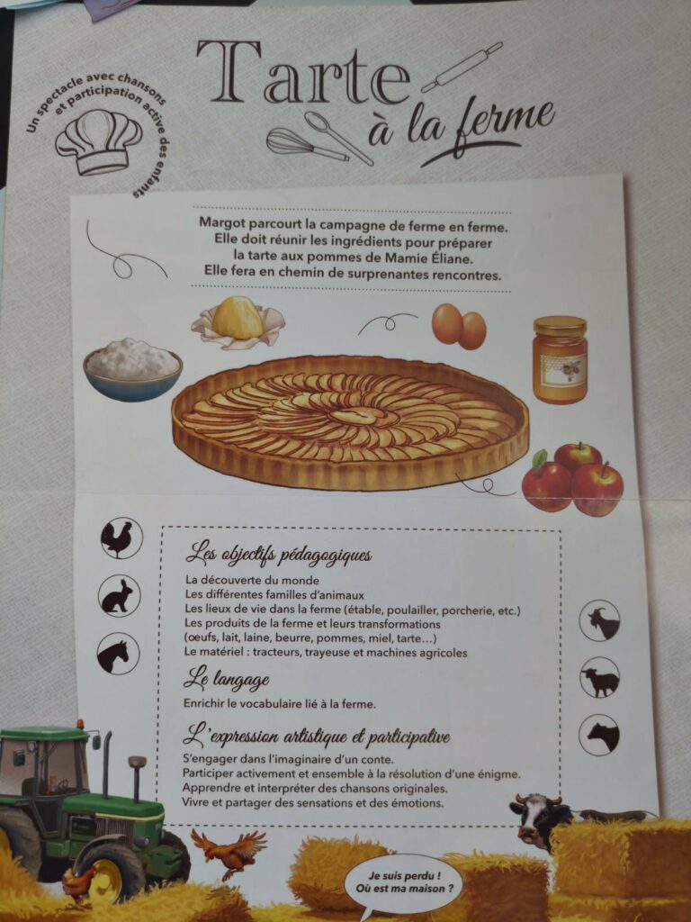 Ce matin, nos élèves de maternelle ont eu la joie d’assister au spectacle “Tarte à la ferme”, proposé par la compagnie Planète Mômes.