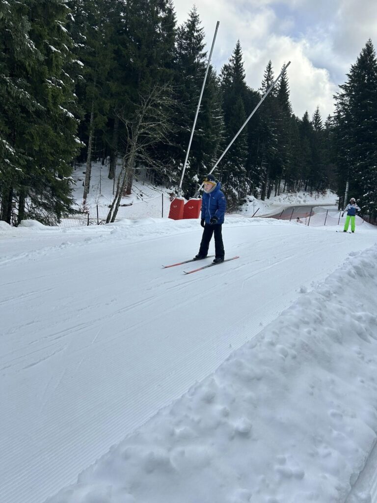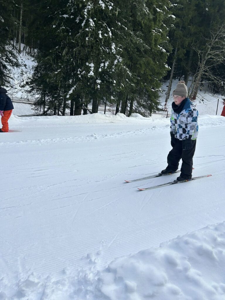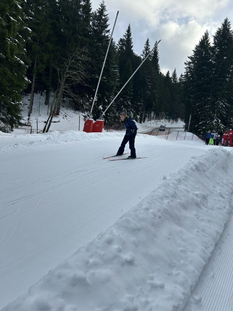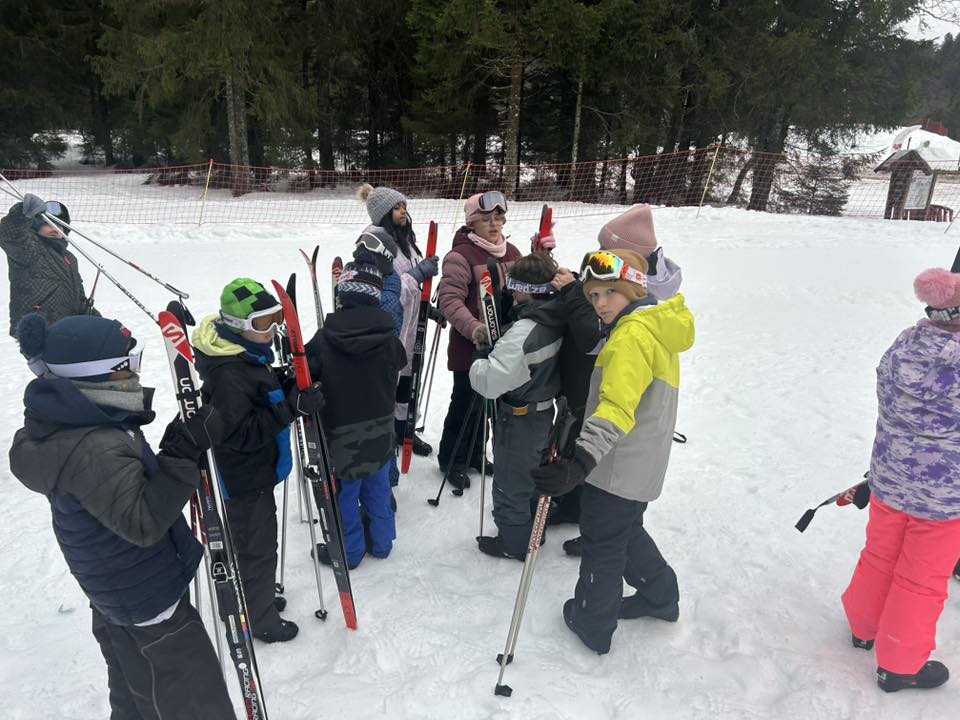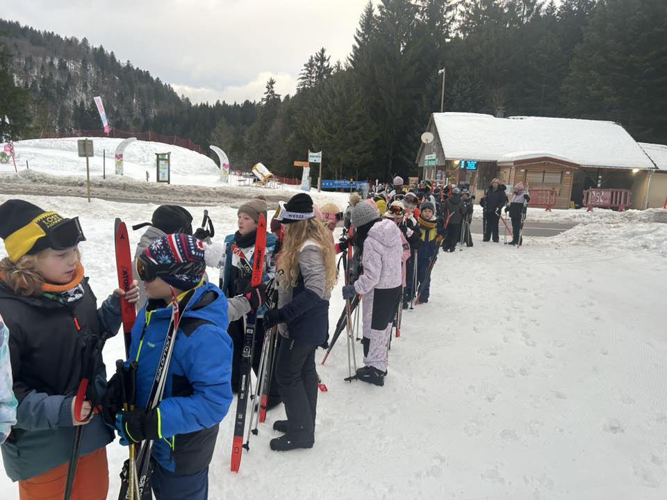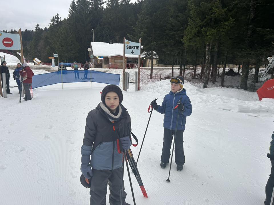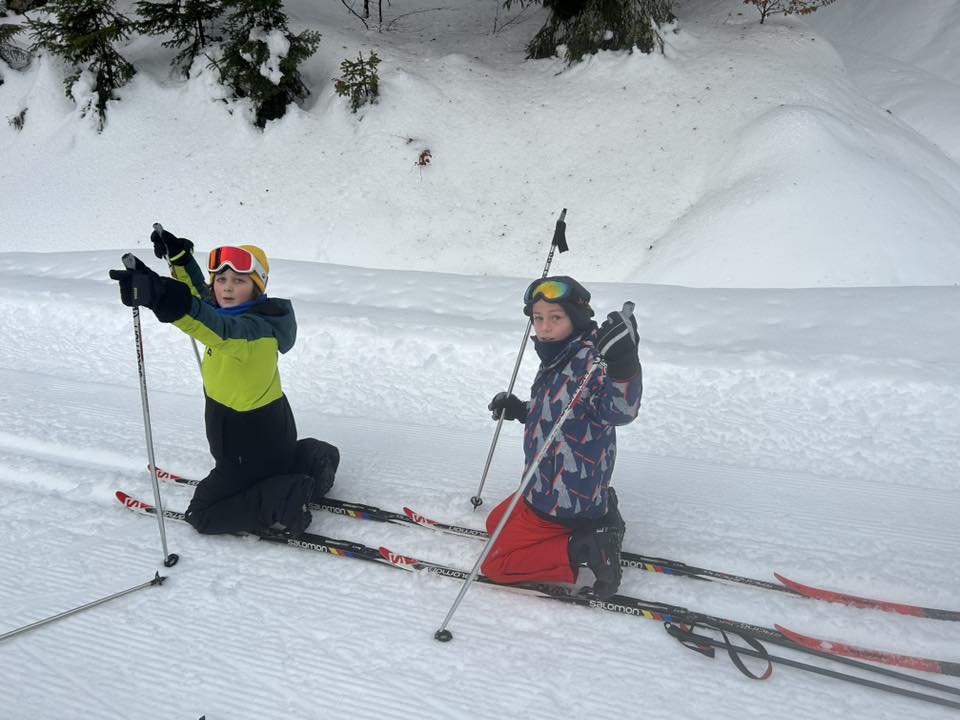 Ce matin, réveil avant 7h pour un petit déjeuner à 7h30, avant le départ vers les pistes de ski de fond. Pour beaucoup d’élèves, il s’agissait d’un tout premier contact avec les skis. Ils ont appris à chausser leurs skis, à tomber et surtout à se relever (une compétence qui s’est révélée très utile par la suite !), puis à effectuer leurs premières glisses. En fin de séance, les élèves ont découvert la technique du chasse-neige afin d’apprendre à s’arrêter en toute sécurité.