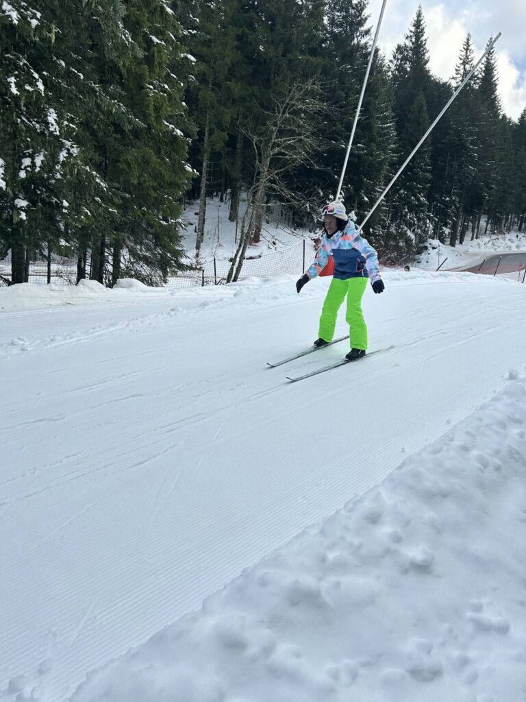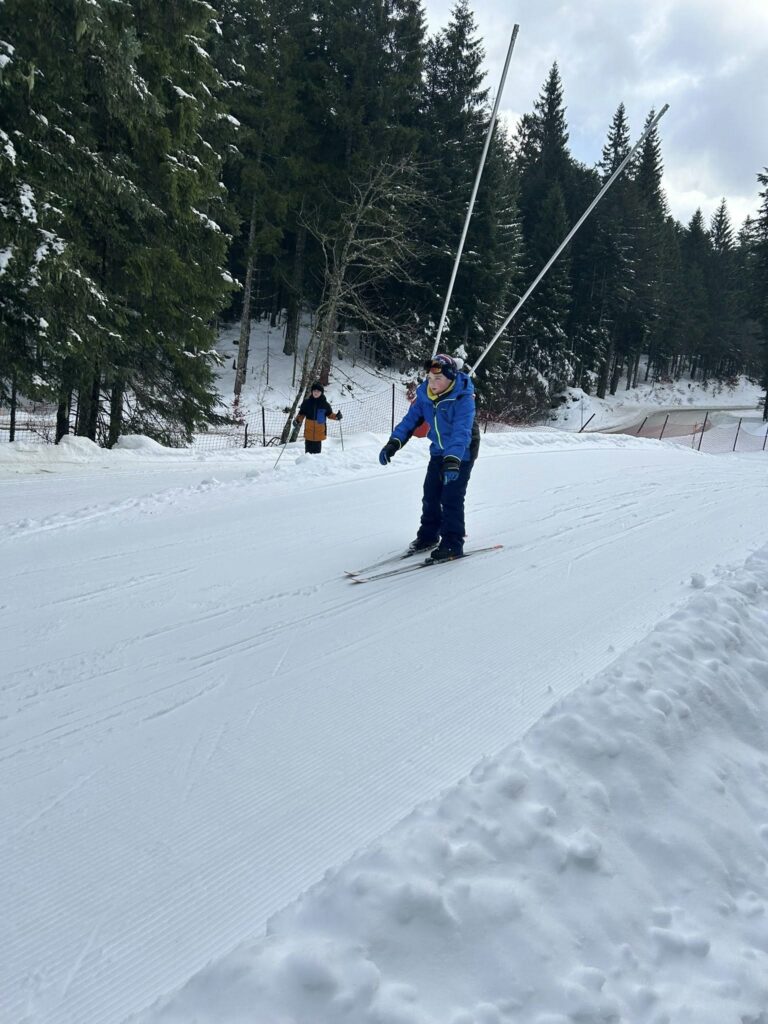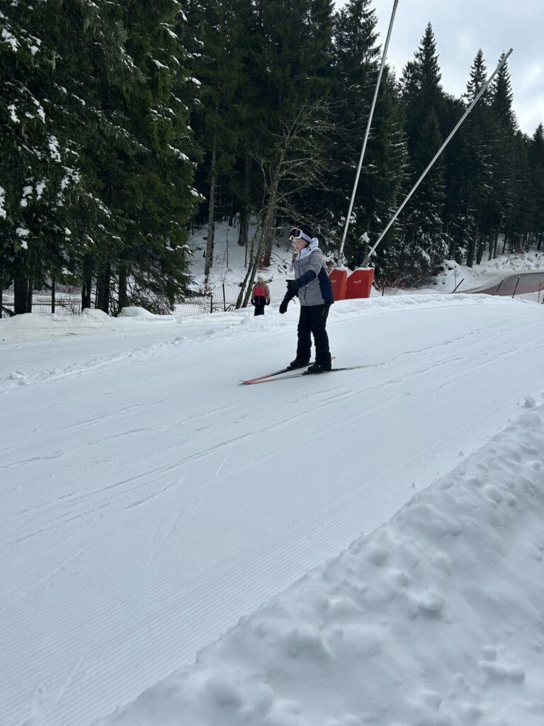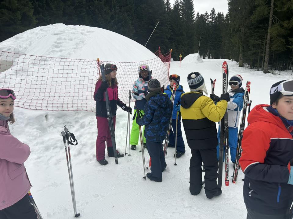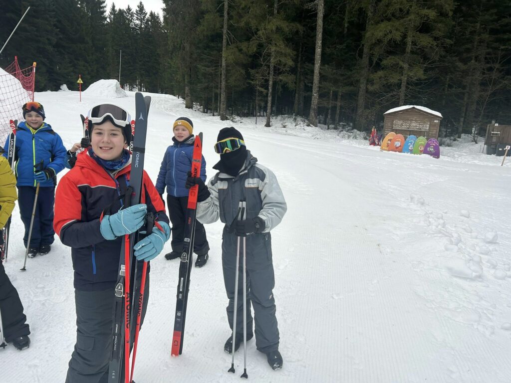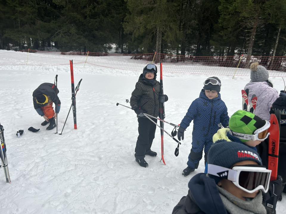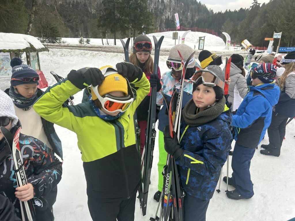 Ce matin, réveil avant 7h pour un petit déjeuner à 7h30, avant le départ vers les pistes de ski de fond. Pour beaucoup d’élèves, il s’agissait d’un tout premier contact avec les skis. Ils ont appris à chausser leurs skis, à tomber et surtout à se relever (une compétence qui s’est révélée très utile par la suite !), puis à effectuer leurs premières glisses. En fin de séance, les élèves ont découvert la technique du chasse-neige afin d’apprendre à s’arrêter en toute sécurité.