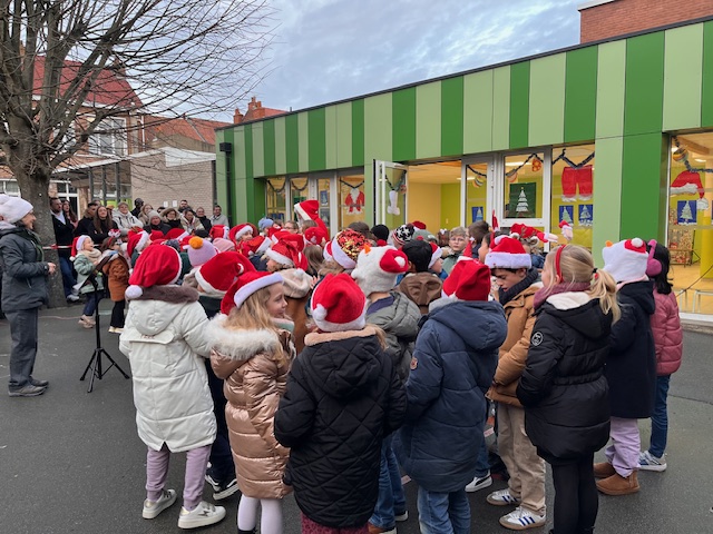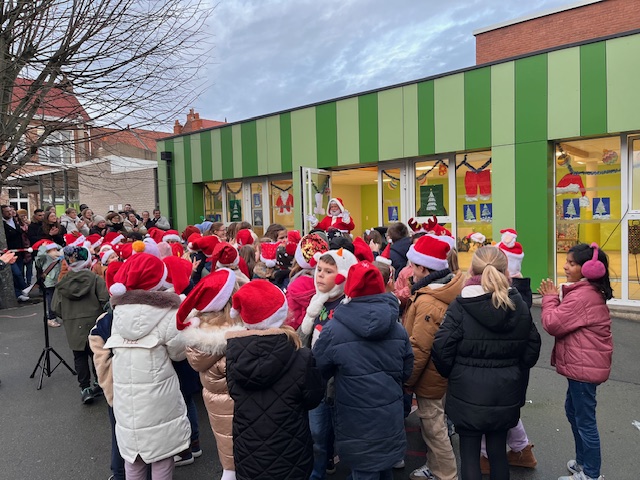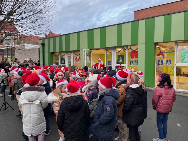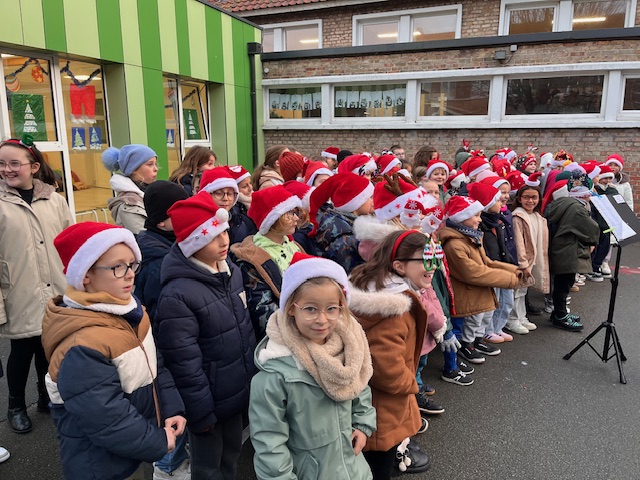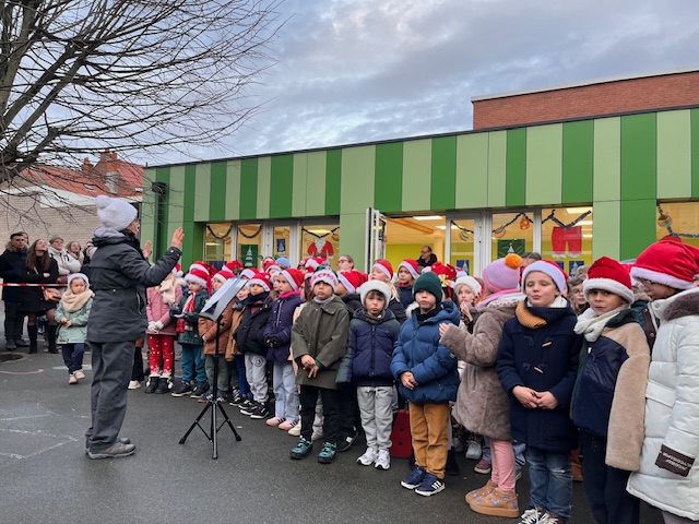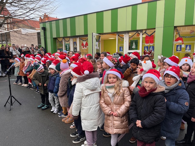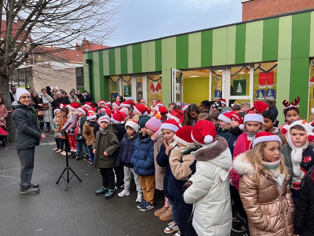 En cette fin d’après-midi, les élèves de CP, CE1 et CE2 ont chanté devant les familles venues nombreuses. Au programme : des classiques comme Petit Papa Noël et des titres plus récents, dont « C’est bientôt Noël » de Keen’V, pour un moment joyeux et plein d’énergie.