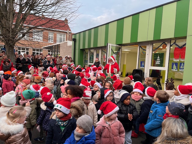Les élèves nous ont interprété quelques chants de Noël dont le classique « Petit papa Noël » Puis, l’APEL leur a offert un chocolat chaud.