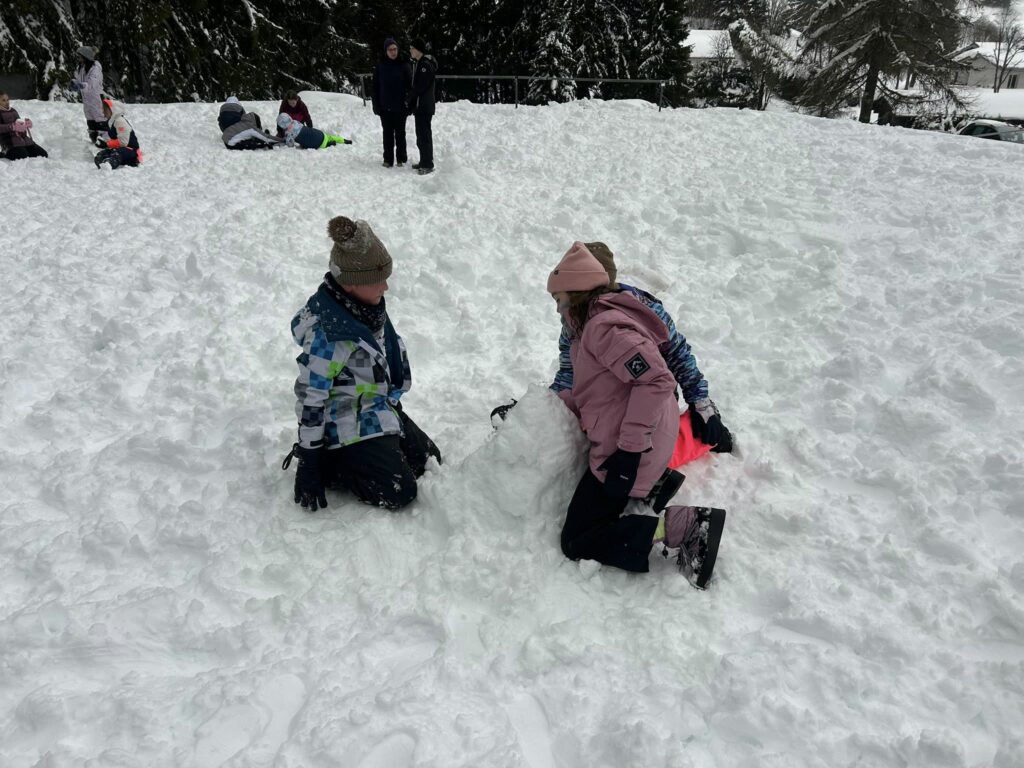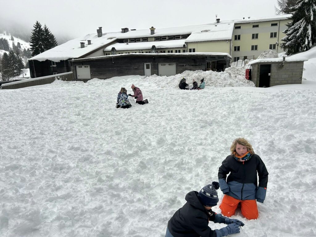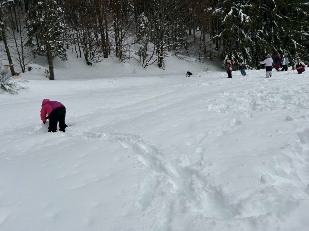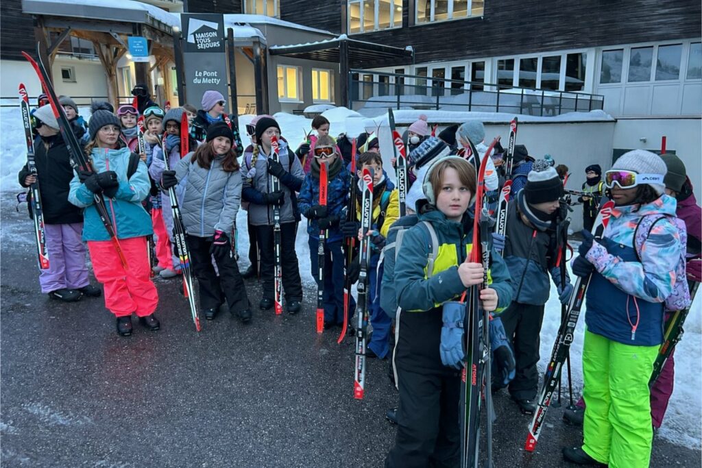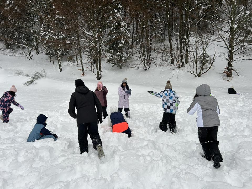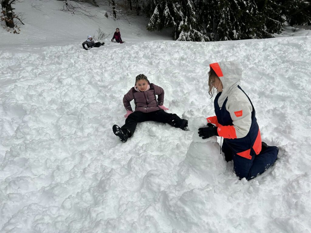Les élèves ont ensuite découvert leurs chambres avant de se préparer rapidement pour enfiler leur tenue de ski. L’après-midi s’est poursuivi avec l’essayage des chaussures et des skis en vue de la première séance de ski de fond. Une fois les essayages terminés, les enfants ont pu profiter pleinement de la neige : batailles de boules de neige, construction de bonhommes de neige et concours d’anges dans la neige ont rythmé ce moment très apprécié.