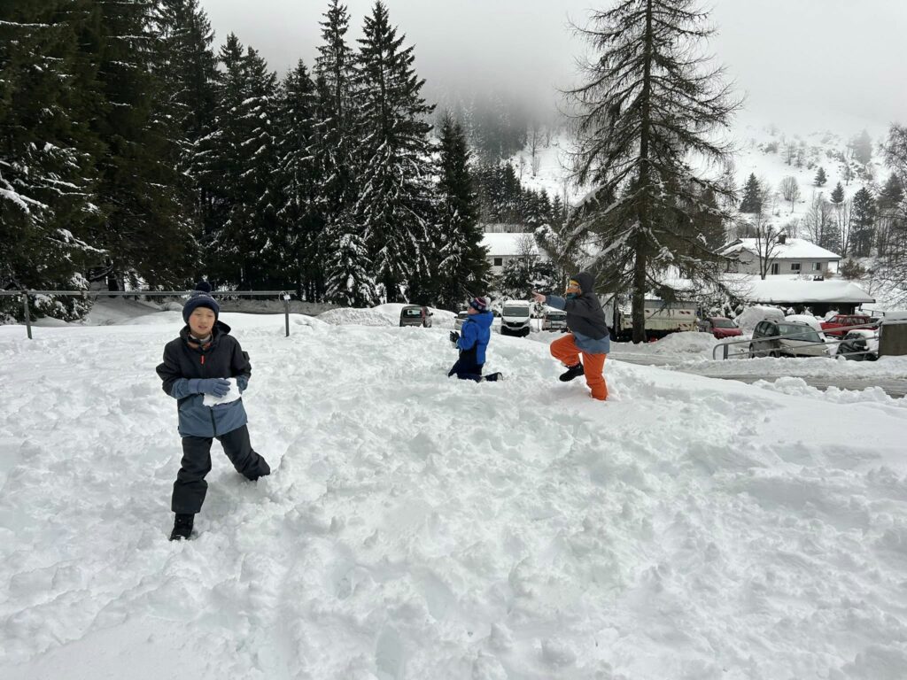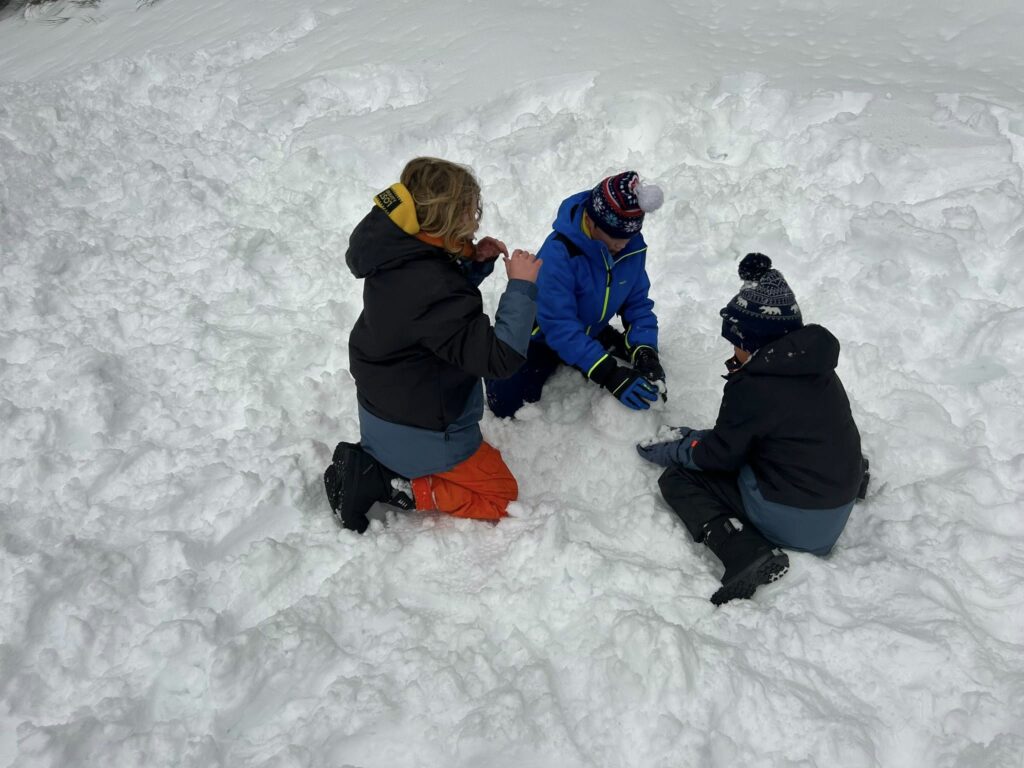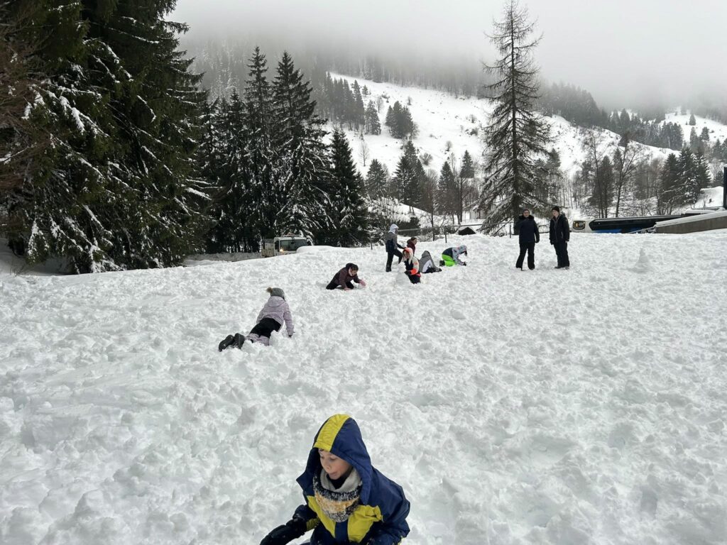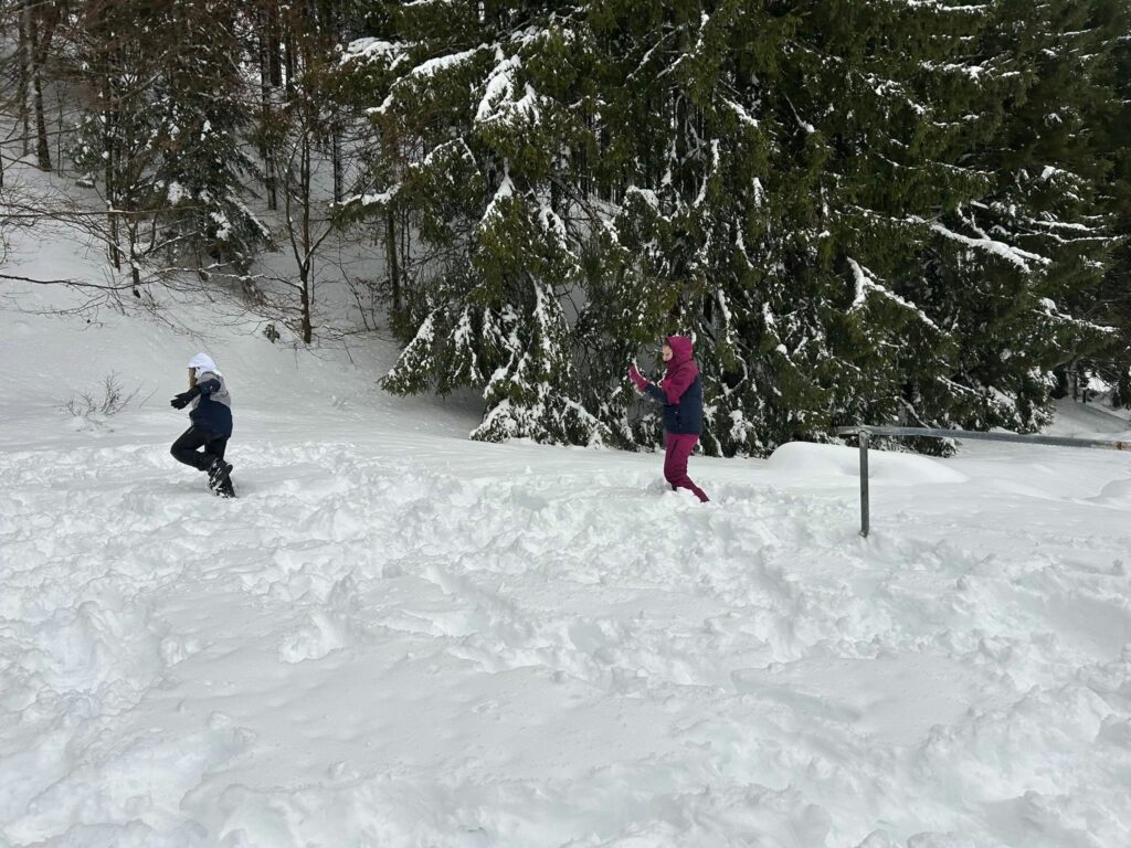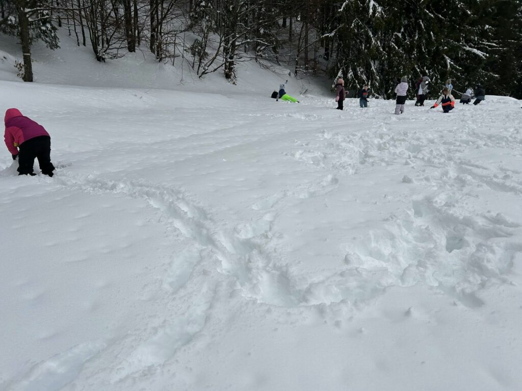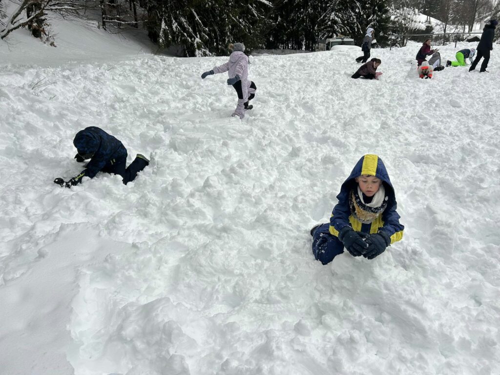 Les élèves ont ensuite découvert leurs chambres avant de se préparer rapidement pour enfiler leur tenue de ski. L’après-midi s’est poursuivi avec l’essayage des chaussures et des skis en vue de la première séance de ski de fond. Une fois les essayages terminés, les enfants ont pu profiter pleinement de la neige : batailles de boules de neige, construction de bonhommes de neige et concours d’anges dans la neige ont rythmé ce moment très apprécié.