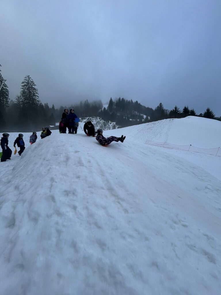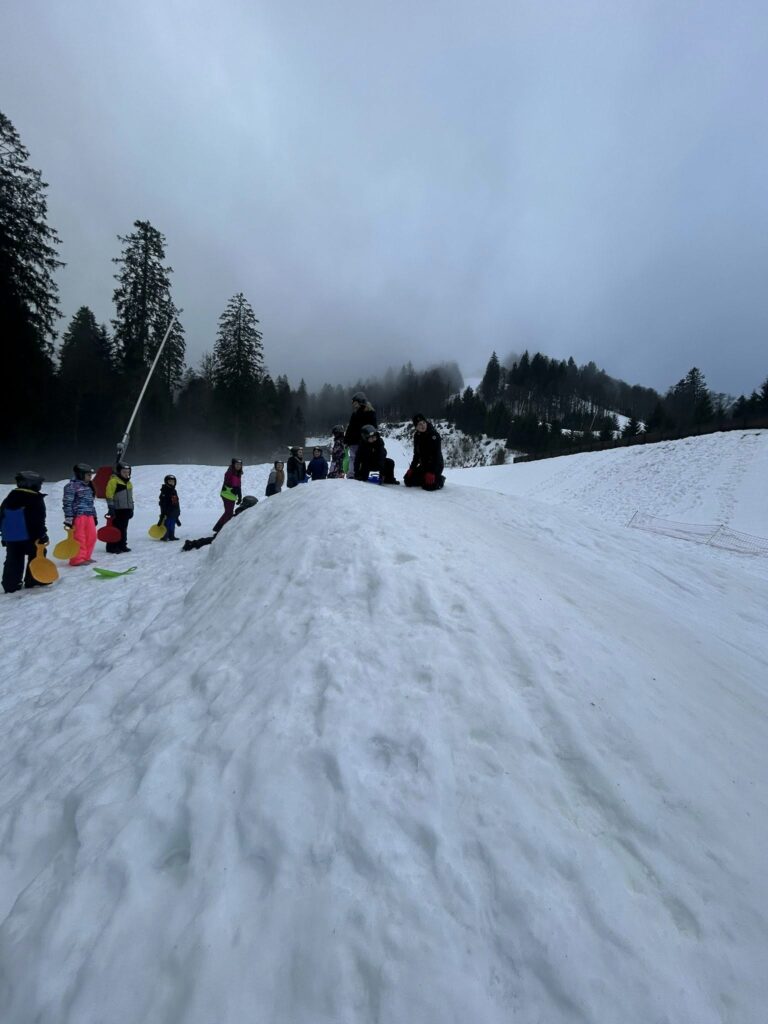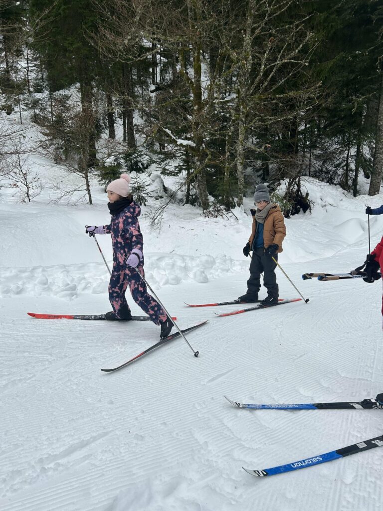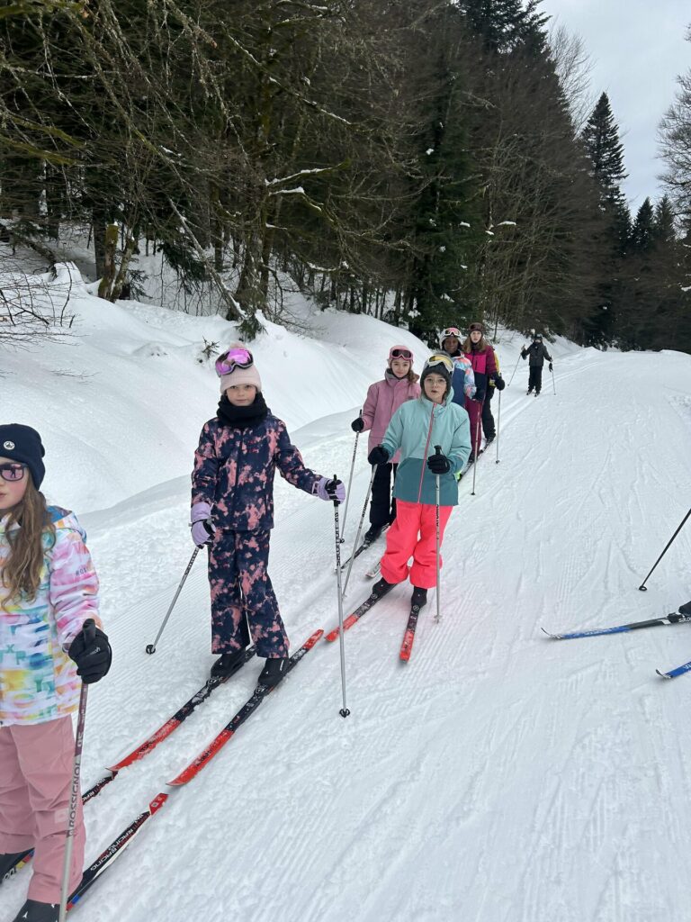 La matinée a été consacrée au ski de fond. De très beaux progrès ont été observés chez tous les élèves, désormais de plus en plus à l’aise sur les skis. La matinée s’est poursuivie par une séance de luge avec nos animatrices Elsa et Coline, avec un concours du plus long parcours en descente. Pas si facile de maîtriser la technique ! La luge est en effet bien plus technique qu’il n’y paraît… mais elle a surtout provoqué beaucoup de rires et de bonne humeur.