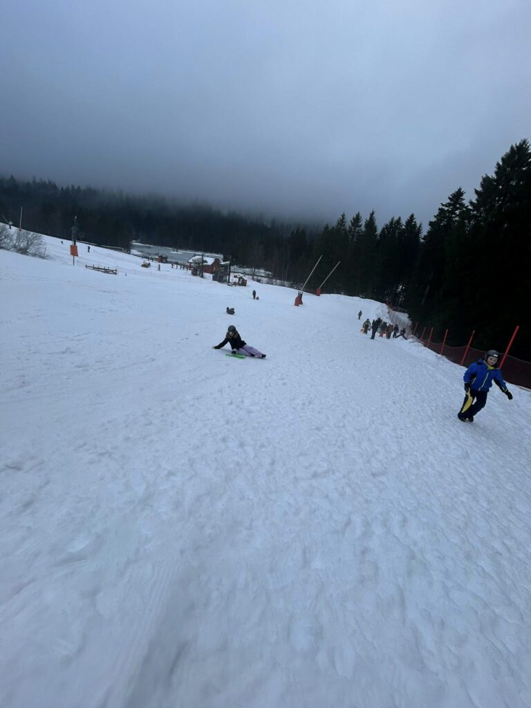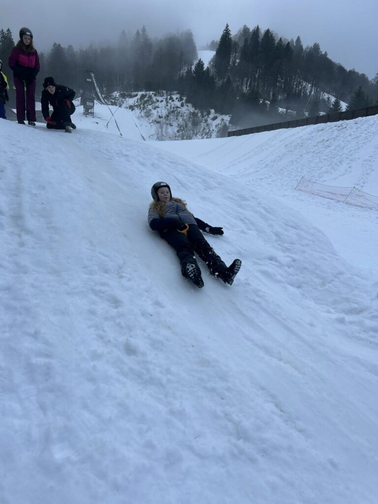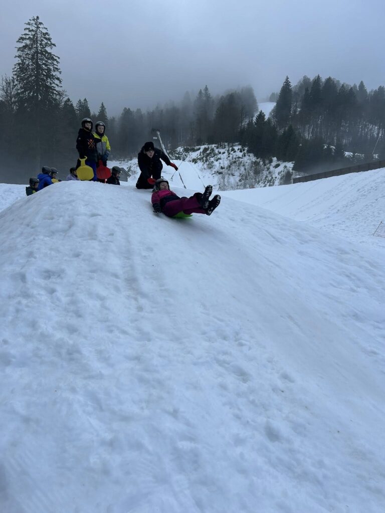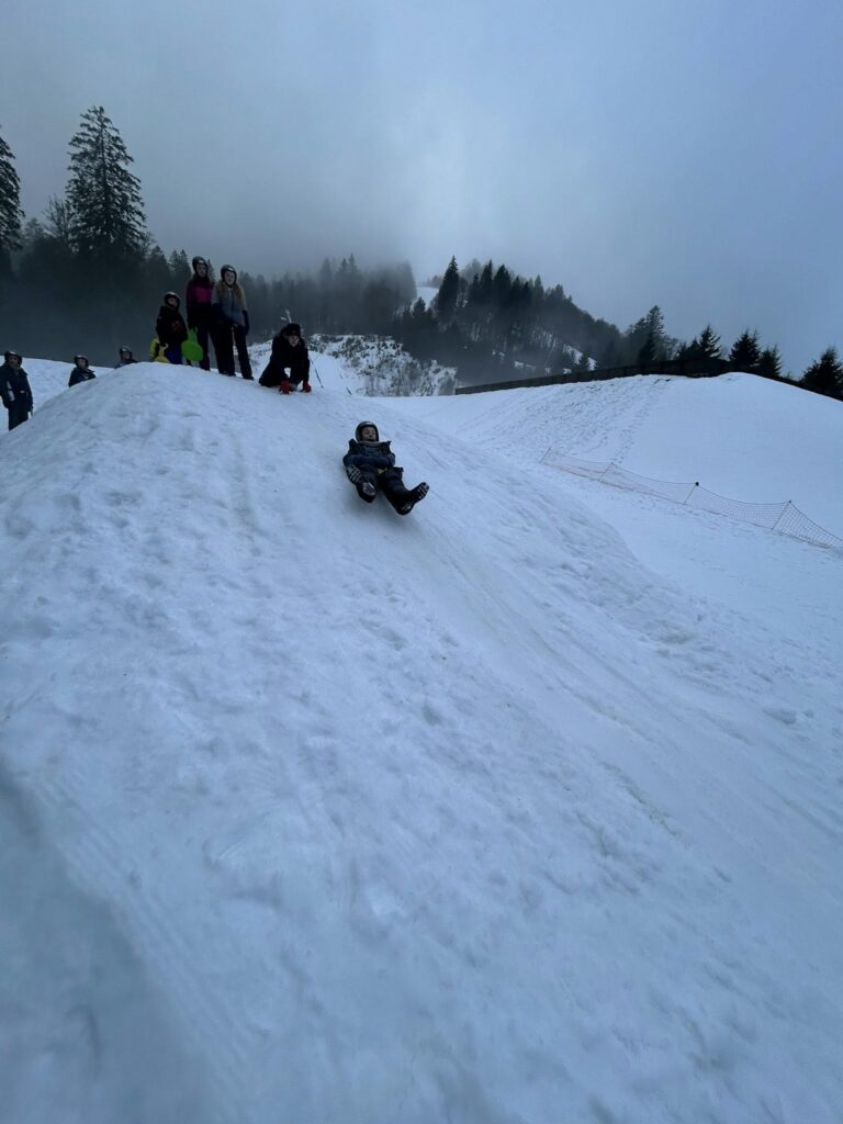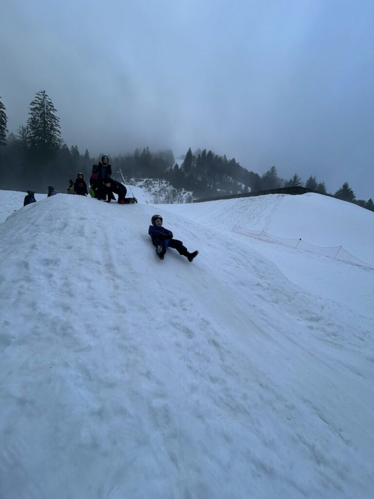 La matinée a été consacrée au ski de fond. De très beaux progrès ont été observés chez tous les élèves, désormais de plus en plus à l’aise sur les skis. La matinée s’est poursuivie par une séance de luge avec nos animatrices Elsa et Coline, avec un concours du plus long parcours en descente. Pas si facile de maîtriser la technique ! La luge est en effet bien plus technique qu’il n’y paraît… mais elle a surtout provoqué beaucoup de rires et de bonne humeur.