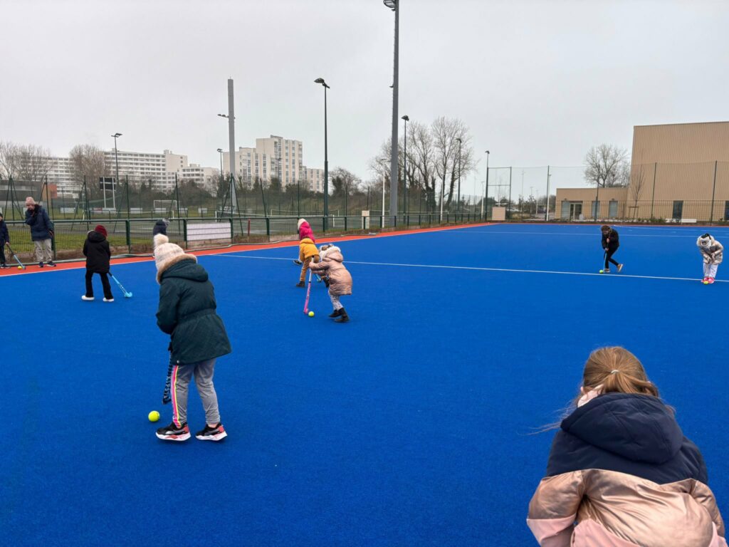 Les élèves de CE1 participent actuellement à un cycle de hockey sur gazon dans le cadre des activités sportives. À travers différents ateliers, ils découvrent ce sport collectif tout en développant coordination, esprit d’équipe et respect des règles.